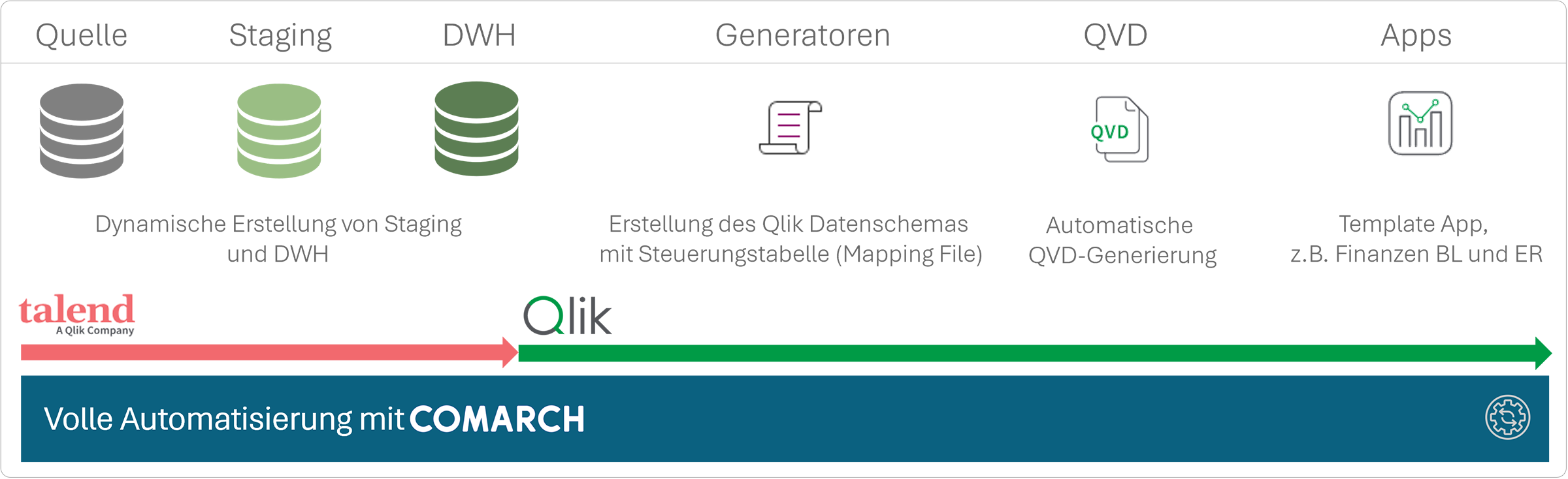 Durch unsere langjährige Erfahrung kennen wir die Anforderungen und Datenstruktur von Comarch ERP Enterprise genau. Auf dieser Grundlage haben wir ein praxiserprobtes Business Intelligence-Startpaket entwickelt, das Ihnen den unkomplizierten und schnellen Einstieg in die BI-Lösung Qlik ermöglicht.